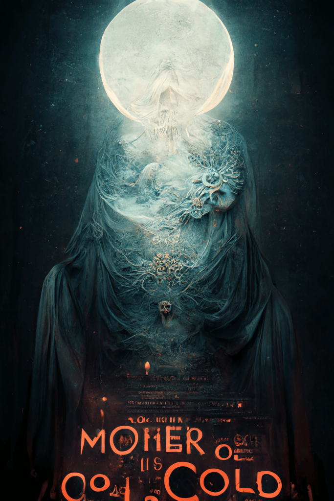 …The glass of the window begins to crystallize as the cold winds freeze everything it touches in place.