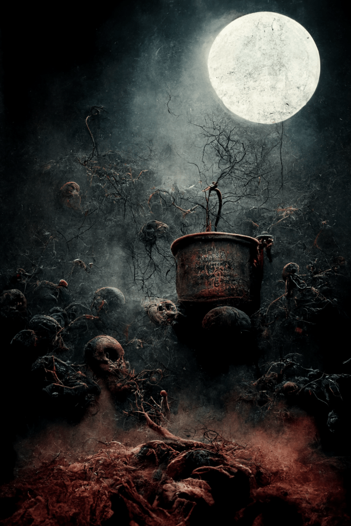 while witches withering in a bucked of sludge,