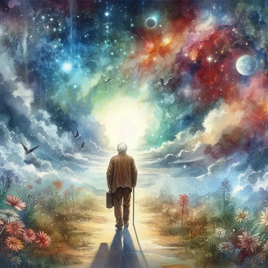 She smiles, a more familiar smile, one he hasn’t seen for a long time, one that takes his breath momentarily away. “I’m you,” he says to himself, as Gloria’s image is quickly replaced by his own, but many years younger.