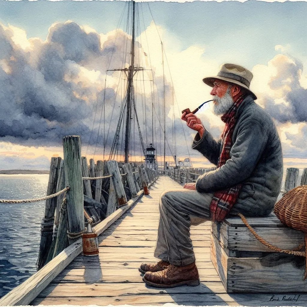 Gunner chews the fatty substance with a grimace painted across his face, squinting sternly from his one eye. The makeshift patch leaves little to the imagination, as a star-shaped scar is proudly displayed, and he wears it like a medal of honour. He draws back and spits a slimy wad of saliva, tobacco, and the sinewy remains of his dinner onto the jetty’s boards.