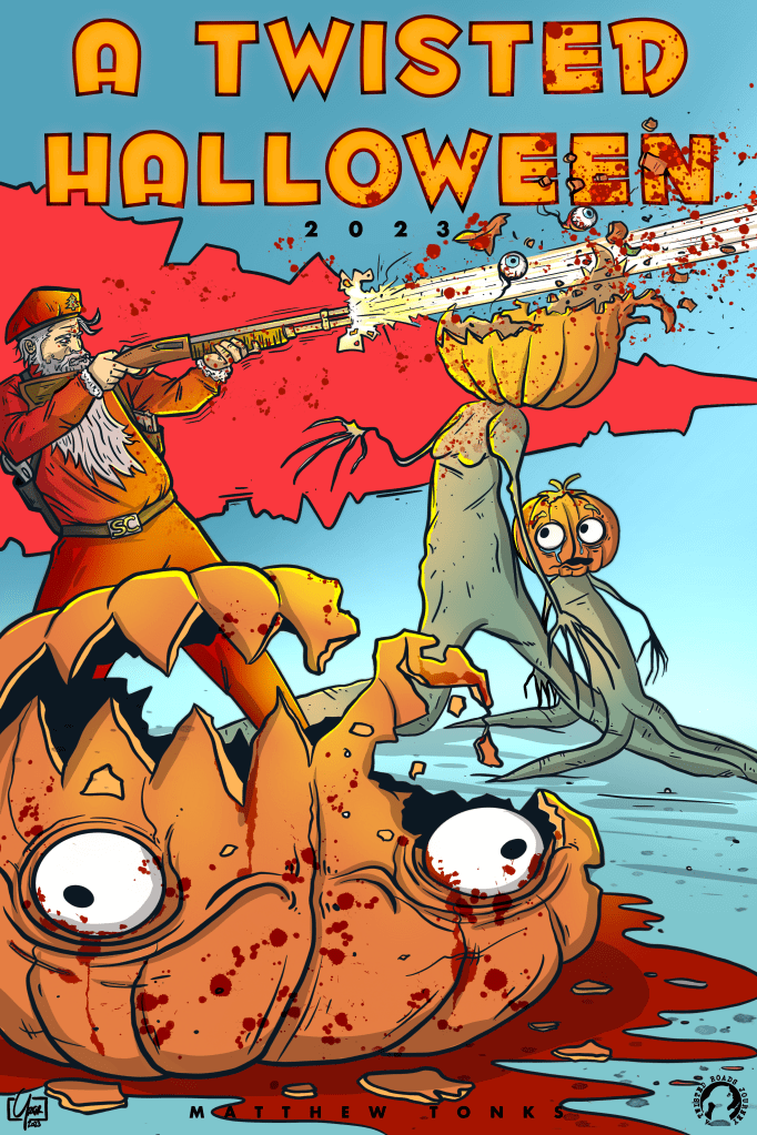 Better late than a cleaver to the head! A Twisted Halloween emerges from the darkness of a long-lost Halloween—not gone, and definitely not forgotten. It’s here to set things wrong in ways you won’t see coming. With 31 bloody, bizarre tales and a cover only Yazgar could conjure, are you ready to face the madness within?